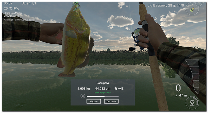 Należy pamiętać również o zezwoleniach wędkarskich np. specjalne są zezwolenia na poszczególne gatunki ryb na danym łowisku – zabranie do siatki czy struny złowionej ryby bez ważnego zezwolenia skutkuje karą pieniężną, o czym jesteśmy powiadamiani przed kliknięciem (zatrzymaj lub wypuść).
