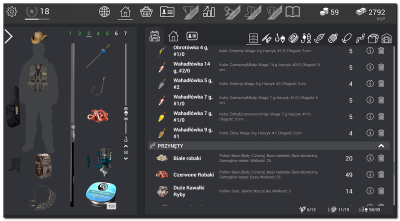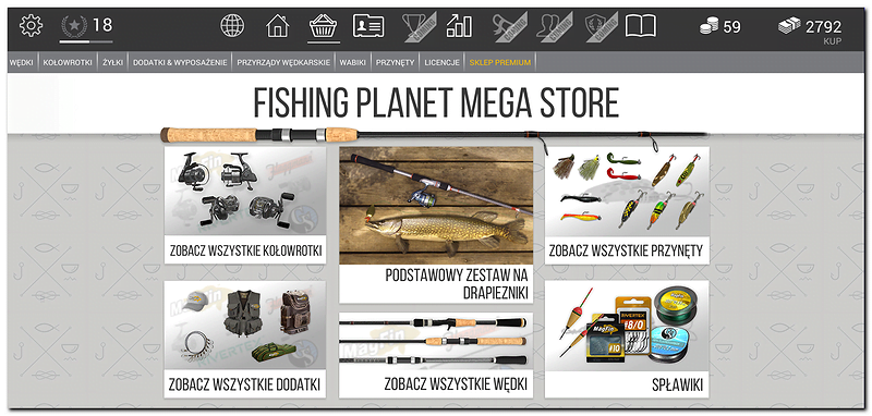 Pierwsze, co zrobimy to w miarę zasobności naszego wirtualnego portfela musimy zakupić drobne akcesoria oraz przynęty, dlatego otwieramy zakładkę z naszym domkiem i weryfikujemy wstępnie nasze wyposażenie. Następnie przechodzimy na zakupy do zakładki sklep na drobne zakupy.